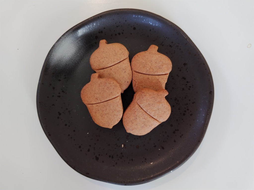 形はどんぐりの形で可愛かったです。甘さ控えめで際立つ塩気と、歯ごたえのサクサク感が印象的でした。小麦粉も使用されているのでどんぐり特有の香りや味ははよくわかりませんでしたが、素朴な味わいの美味しさでした。