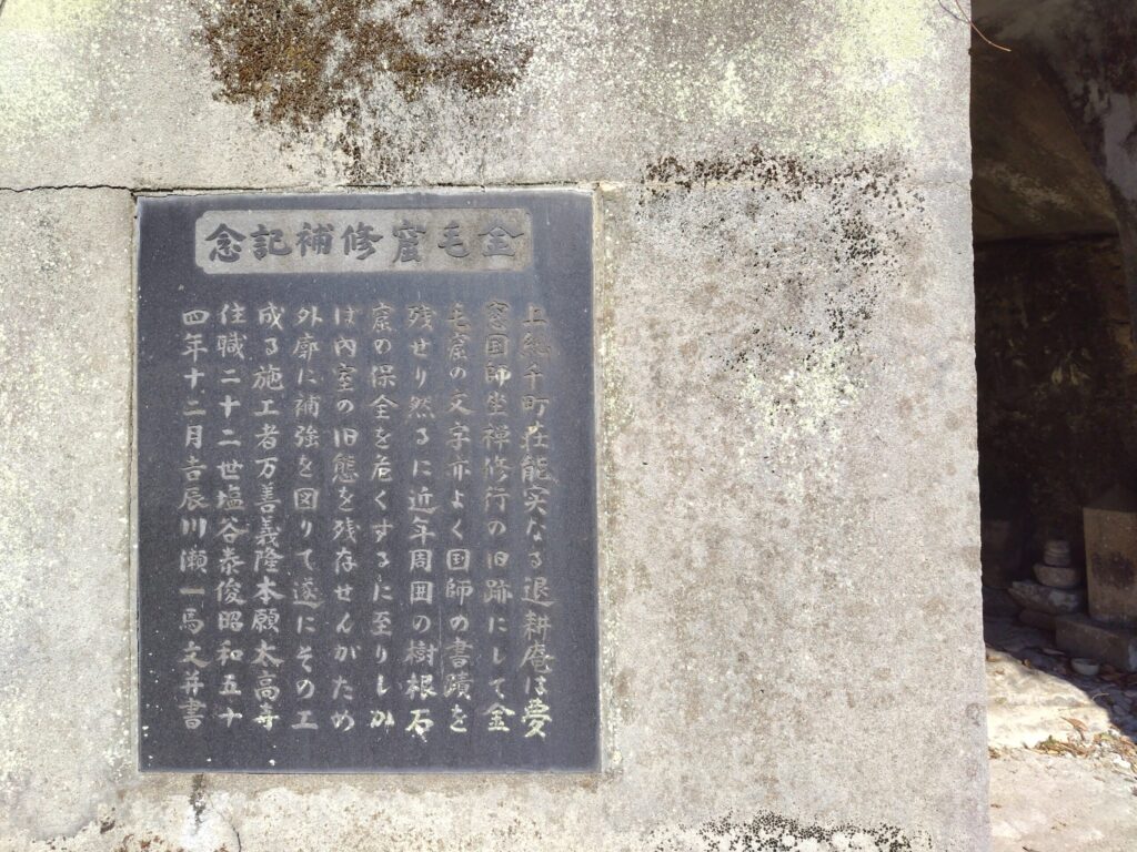 壁面に「金毛窟」の文字。この刻銘は夢窓国師の手になるものと考えられているそう。