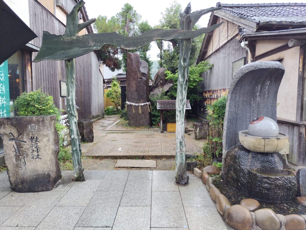 御神体は高さ約10尺(約3m程)の黒御影石と、樹齢300年の欅で構成。