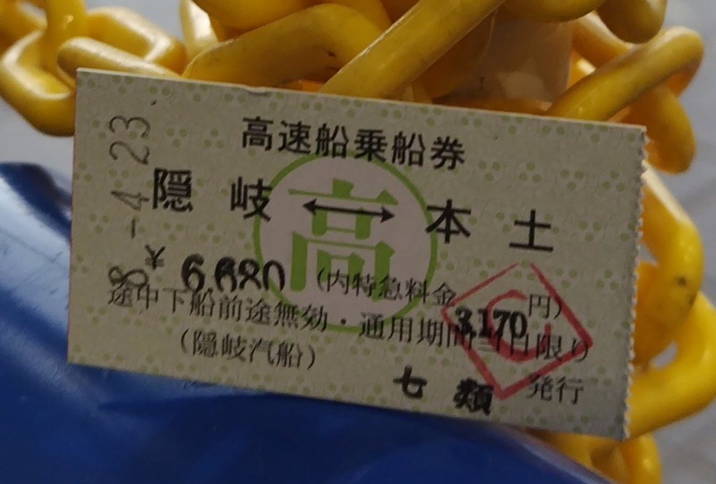 堺港からバスで七類港まで移動。そこから高速船レインボージェットを利用し隠岐へ。